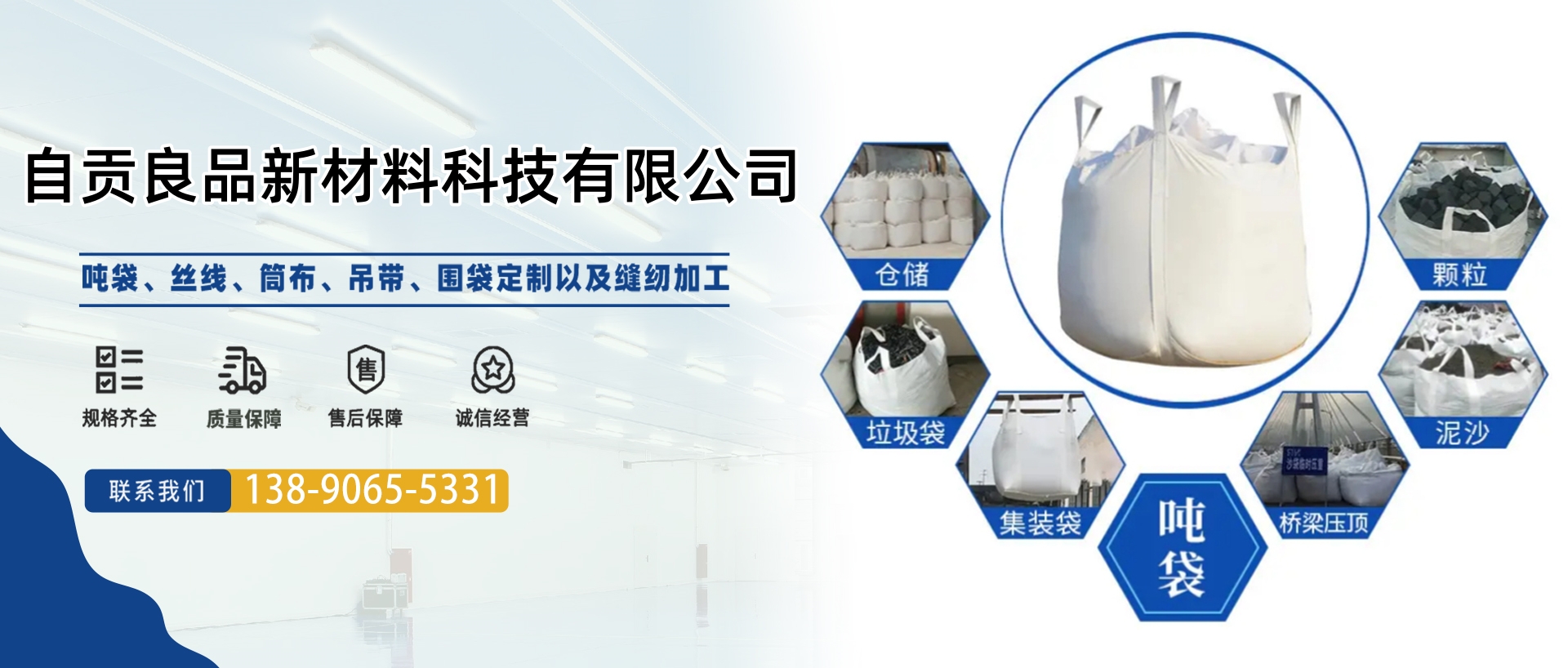 公司簡介 自貢良品新材料科技有限公司位于自貢市貢井區(qū)航空產業(yè)園B4-01-5地塊。成立于2020年4月,占地面積18余畝,生產車間面積約6000平米,目前一線員工百余人。我們專注于集裝袋的研發(fā)、設計、生產。產品包括圓形集裝袋、方形集裝袋、拉筋集裝袋、托盤袋、敞口集裝袋等各種定制集裝袋。公司秉持著誠信、創(chuàng)新、分享、拓展的價值觀,為客戶提供系統(tǒng)的包裝解決方案與服務。 業(yè)務領域 作為集裝袋行...